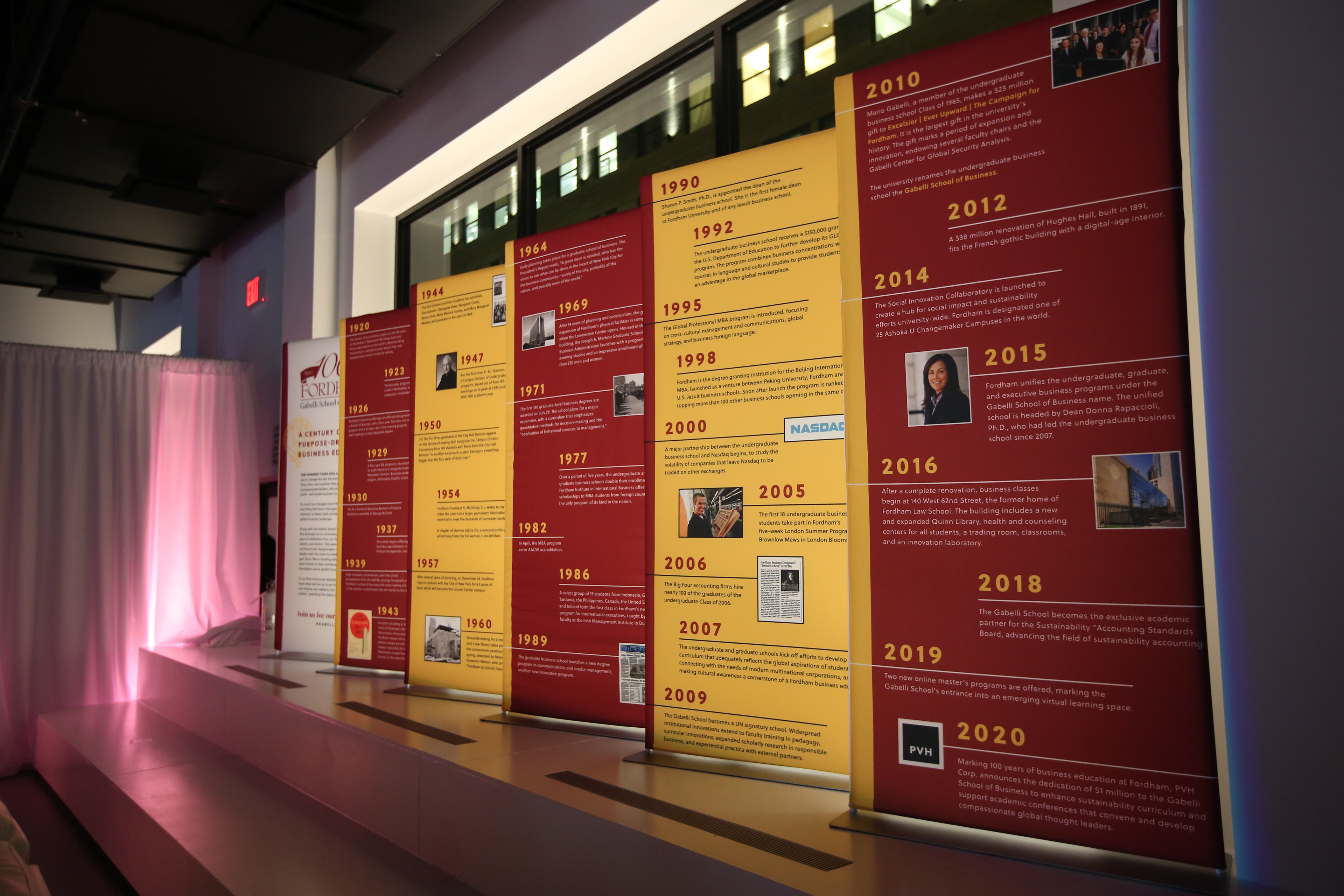 The event celebrated Gabelli School of business centennial year and their partnership with PVH. the main highlight was to promote Pvh's corporate responsibility on initiatives in sustainability and circular economy. the design of the space focused on minimal waste by using only rental equipment, reduce printing and recycling all materials .